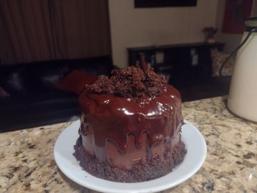 This is a chocolate cake with a choolate ganache drip